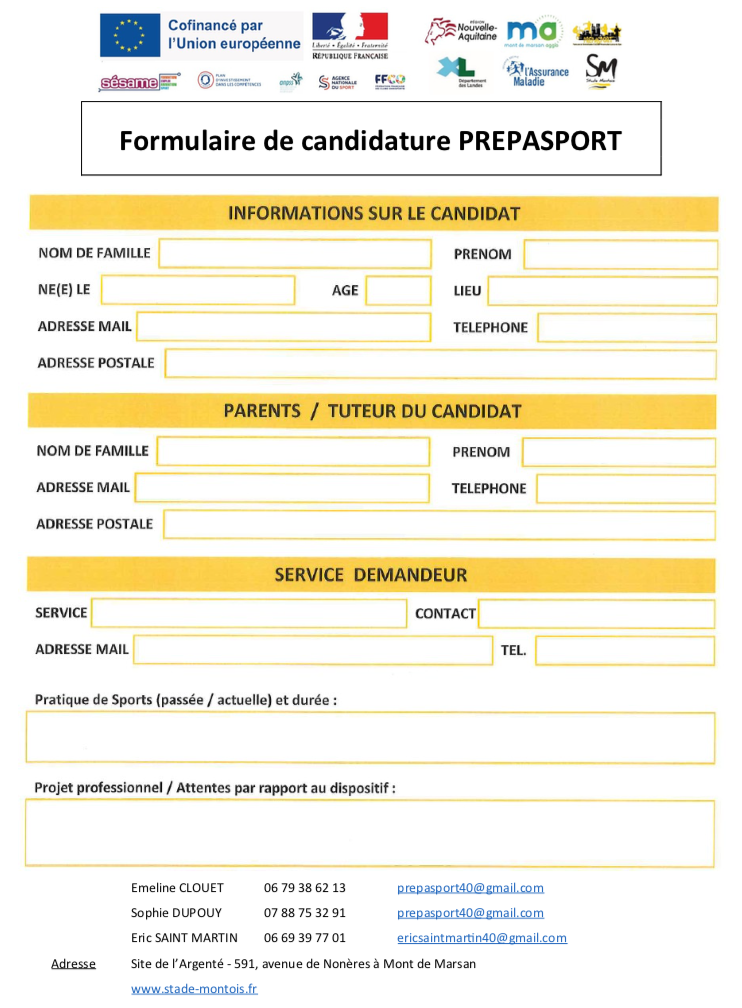 Une attestation de non activité professionnelle ou de non formation à la date d’entrée en formation PREPASport doit être fournie par le prescripteur.